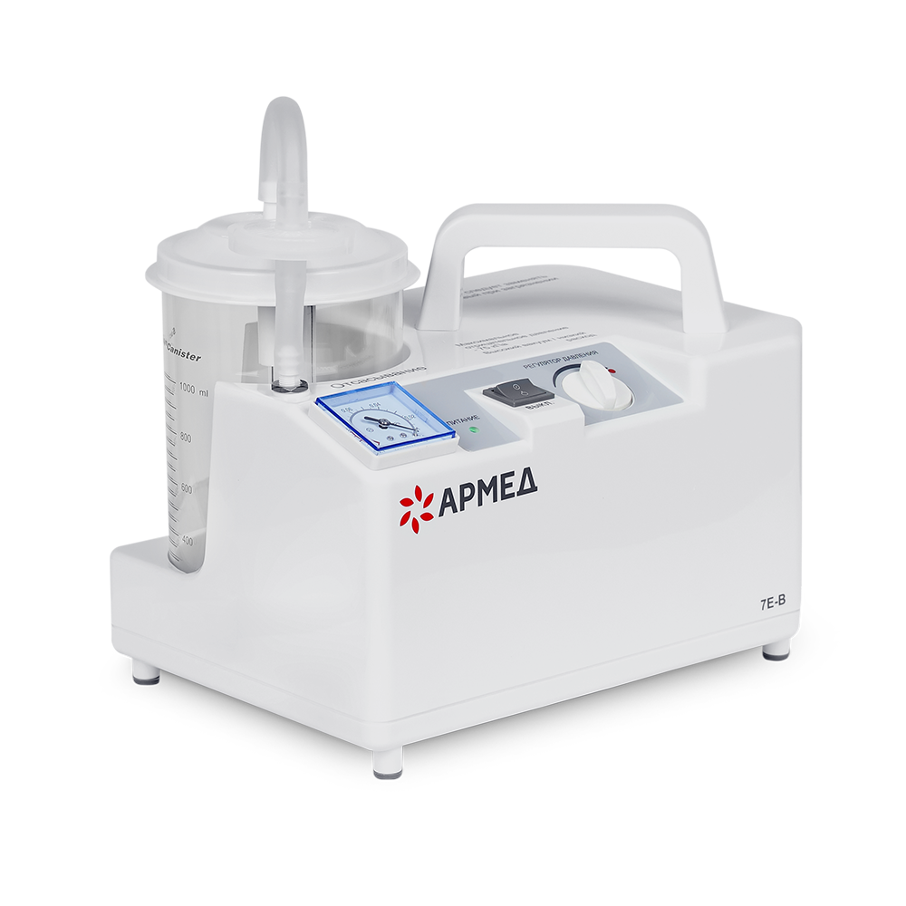 Отсасыватель Армед 7Е-В имеет небольшие габариты, поэтому его можно переносить в помещении за удобную ручку. Для включения и управления прибором предназначена одна кнопка и механический регулятор