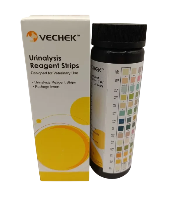 Тест-полоски Vet 14 для ветеринарного анализатора VUR-200 предназначены для качественного и полуколичественного определения крови/гемоглобина, кетоновых тел, белка, нитритов, билирубина, уробилиногена, глюкозы, pH, относительной плотности, лейкоцитов, креатинина, микроальбумина, кальция и аскорбиновой кислоты в моче у животных